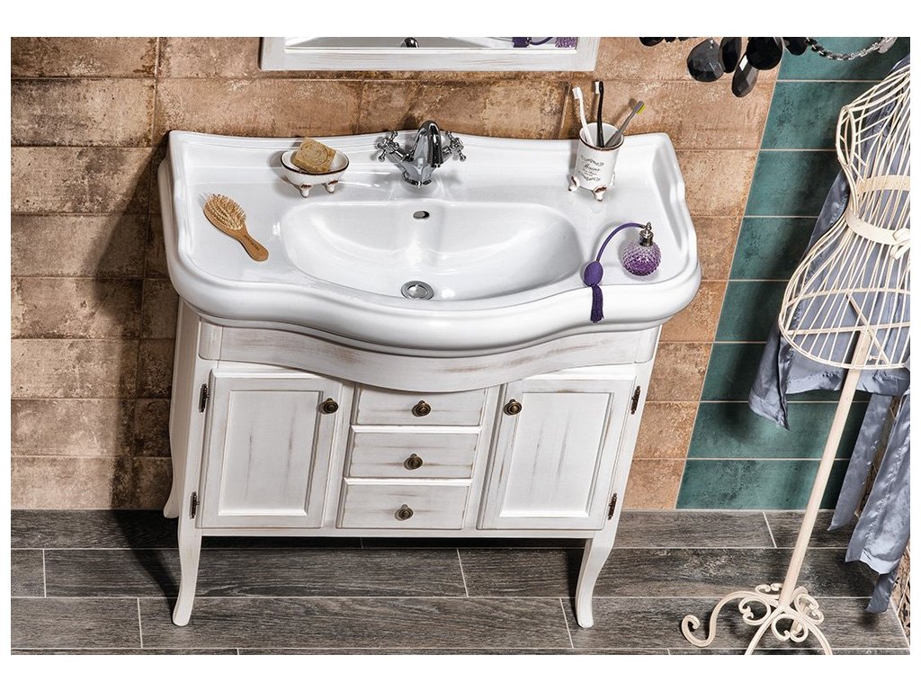 RETRO umyvadlová skříňka 89x80x48cm, starobílá