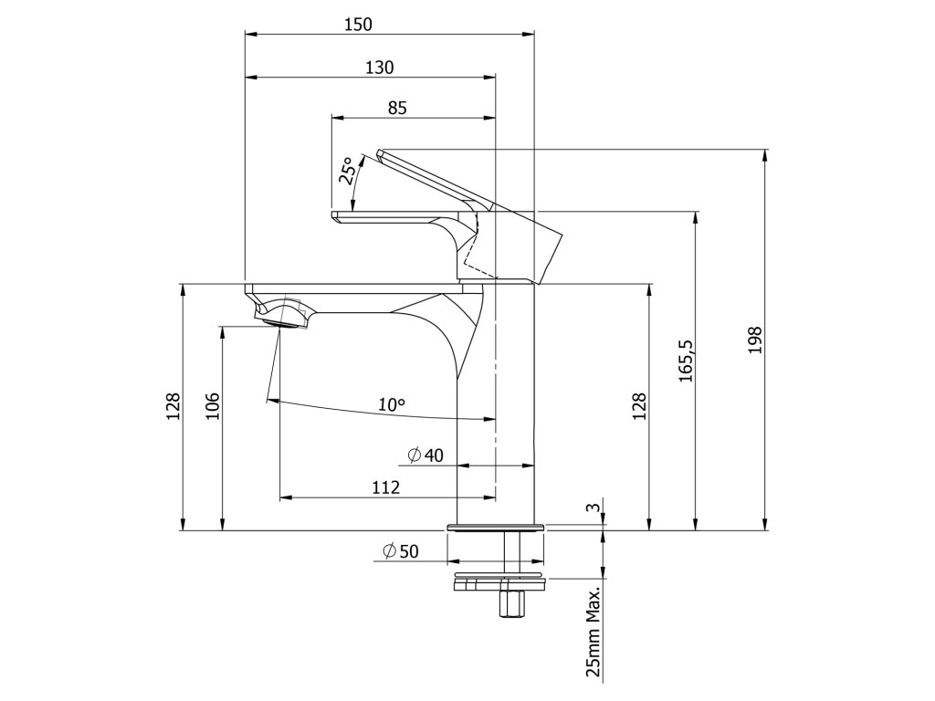 Umyvadlová výpust 5/4“; click-clack; velká zátka; 10-55mm; černá mat