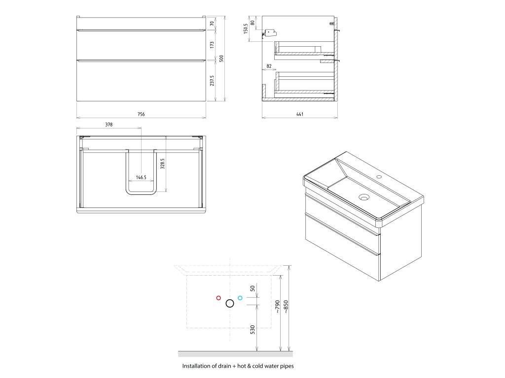 Umyvadlo na zeď nebo do nábytku 80 cm