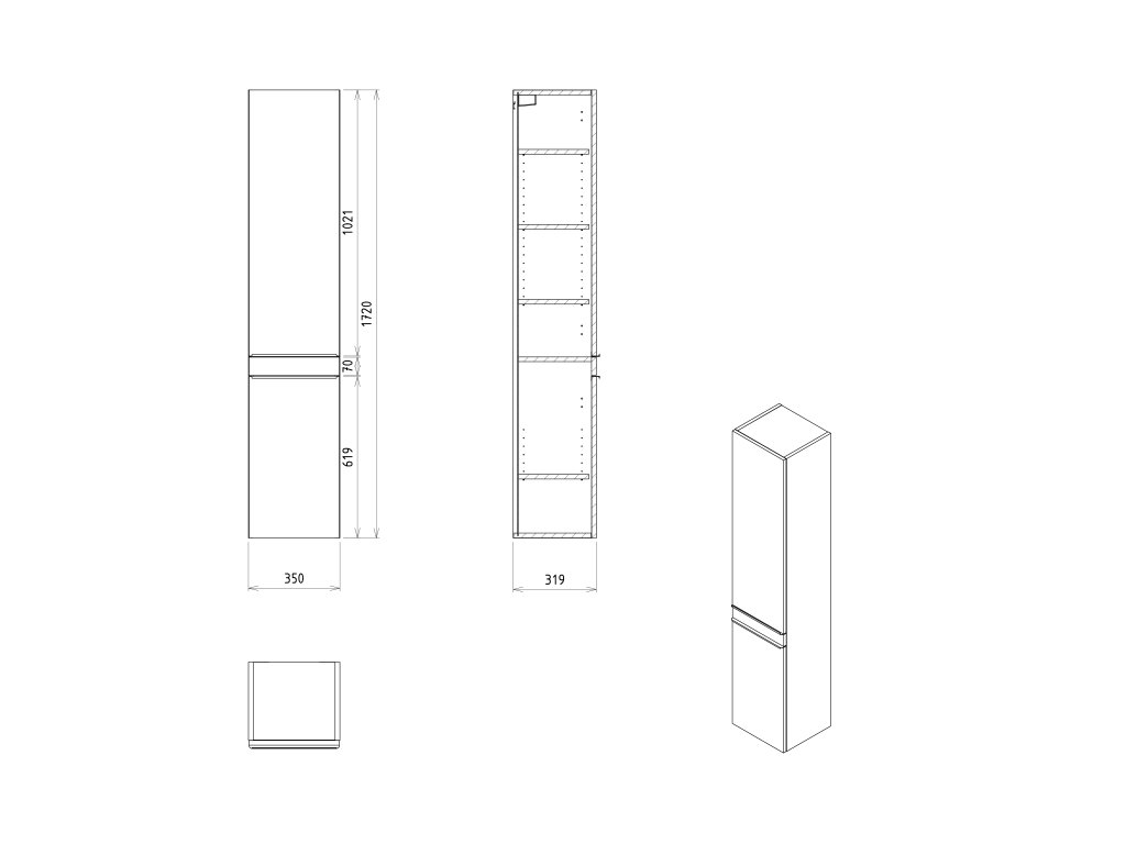 SITIA skříňka vysoká 35x172x32cm; 2x dvířka; levá/pravá; dub alabama