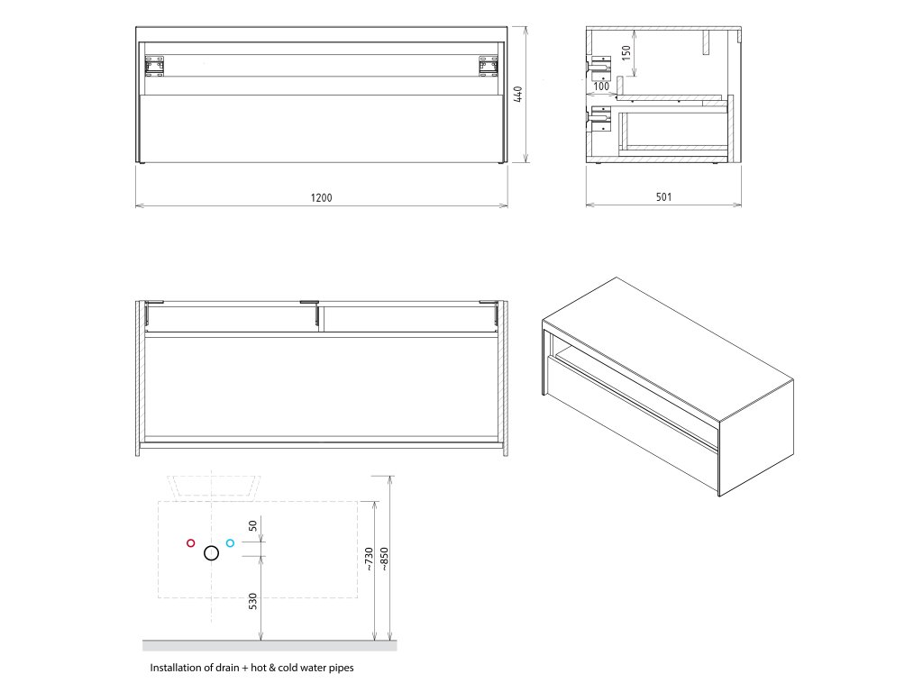 Nábytek je vybaven pojezdy zásuvek s pomalým dojezdem a systémem automatického dovření zásuvek. Již žádné hlučné dovírání.