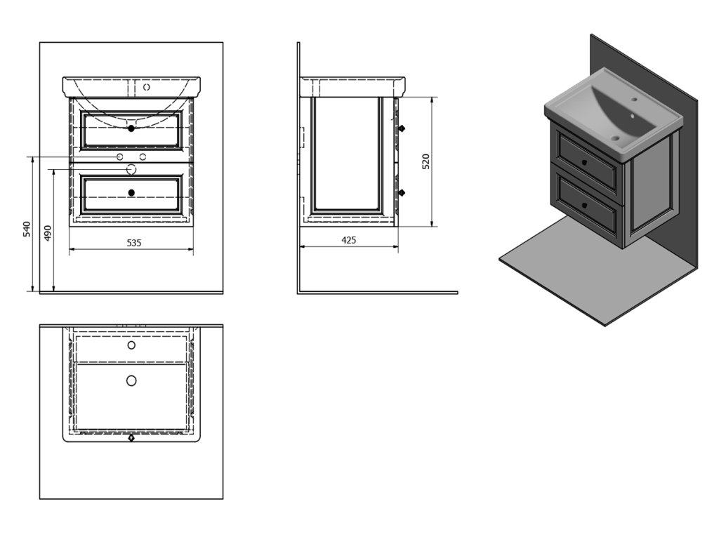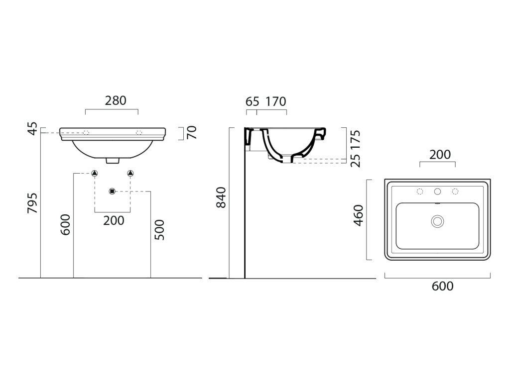 Umyvadlo se třemi otvory 60 x 46 cm, bílé
