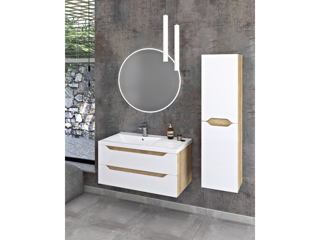 Koupelnový set WAVE 90; levá; bílá/dub alabama