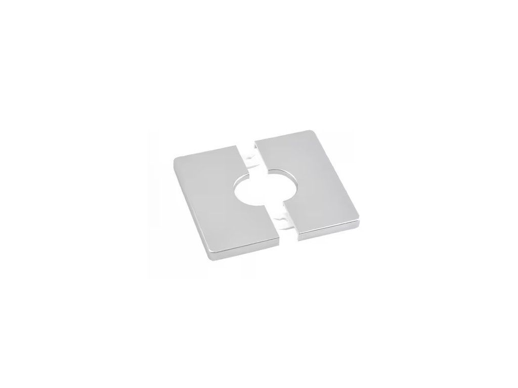 Krycí čtvercová dělená samolepící růžice s otvorem 26 mm v barvě matný chrom. Dělená okrasná krytka pro dodatečné zakrytí otvoru kolem rohových nebo výtokových ventilů 1/2". Okrasné dělená rozeta je určena pro nalepení na obklad. Samolepicí vrstva je součástí dodávky.