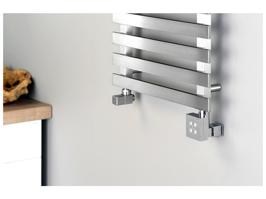 KTX s krytem pro přímé napojení do zdi - elektrická topná tyč s designovým termostatem. Hranatý design vhodný pro všechny typy radiátorů. Symetrické provedení umožňuje instalaci na levou i pravou stranu radiátoru.