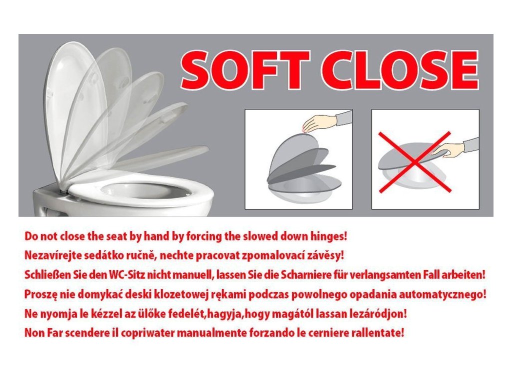Pomocí hydraulického systému víko i sedátko pomalu dopadají na mísu. Pozvolné sklápění sedátka i víka zaručuje bezpečnost a zabraňuje poškození sedátka i WC mísy/urinálu.