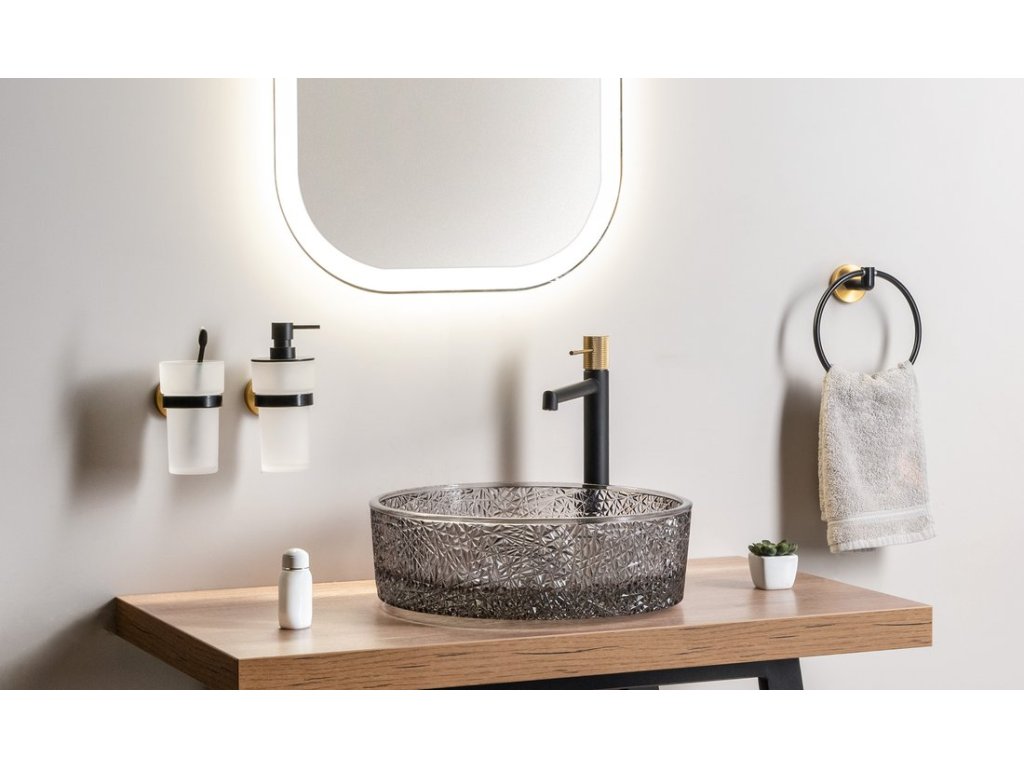 LARISSA dávkovač mýdla 250ml, mléčné sklo, černá/zlato mat