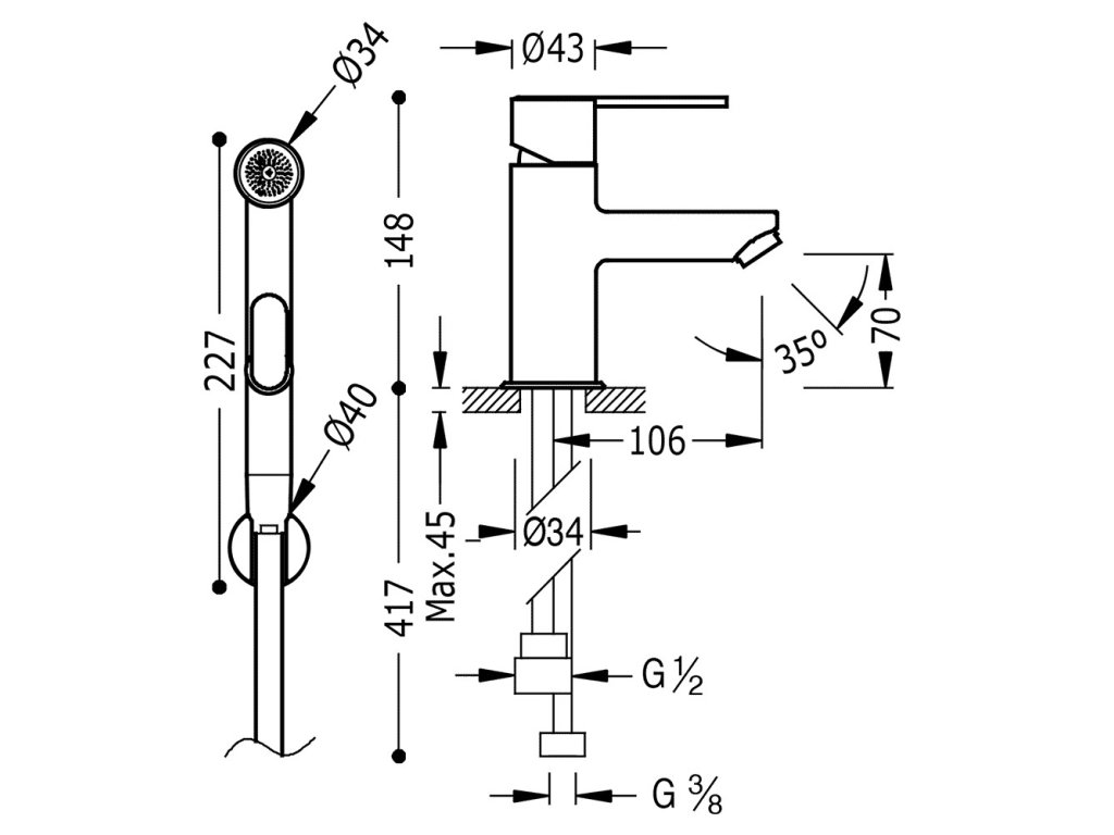 Umyvadlová stojánková baterie s bidetovou sprškouVýška: 148 mm