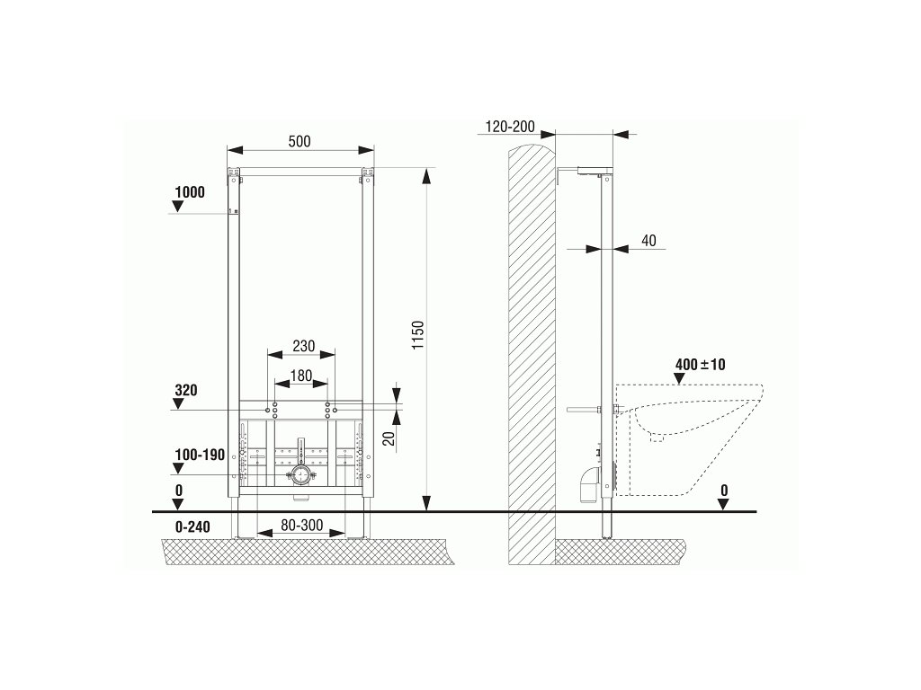 - Rozsah držáků pro předstěnovou instalaci: od 12 do 20 cm