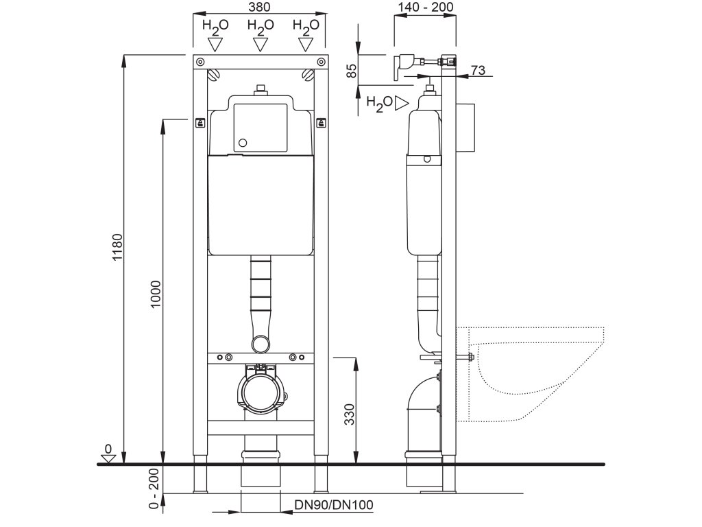 Vlastnosti- Nosný toaletní prvek, povrchově chráněný práškovým nástřikem, z profilů 40 × 40 mm, s předem smontovanou vestavěnou nádržkou typu 3800