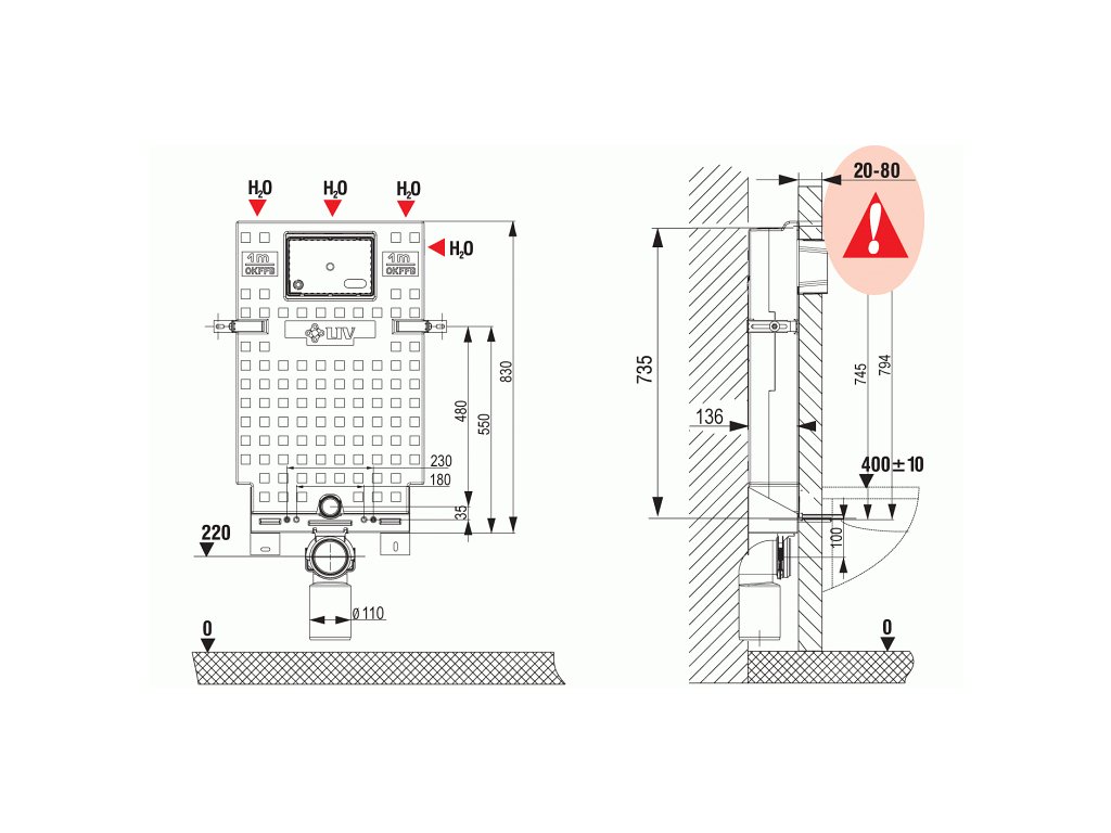 LIV-MOUNT 7512 modul pro zazdění s nádržkou pro závěsnou WC mísu, v EPS izolaci pro lepení obkladu