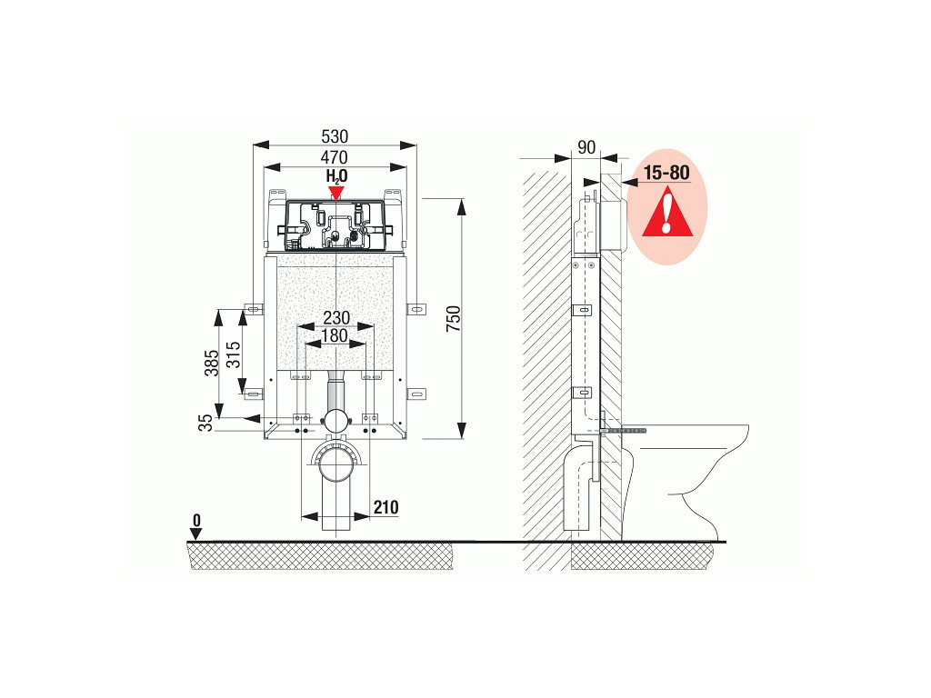 - Instalace nádržky: hloubka od 15 do 80 mm