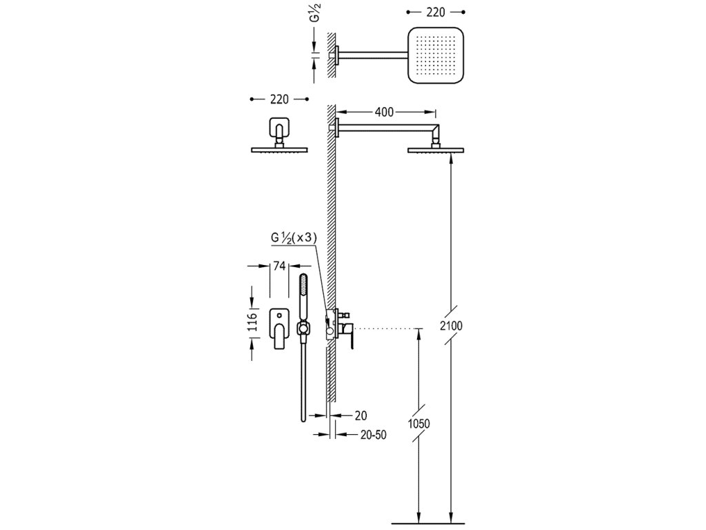 - Pevná sprcha 220×220 mm. s kloubem