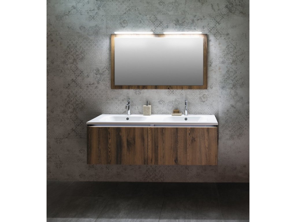 Uvnitř skříňky je nad zásuvkou praktická police na drobnosti každodenní potřeby. Pod hranu umyvadla lze instalovat tlumené LED osvětlení, které pro jeho nízkou spotřebu (1W) není nutné vypínat.