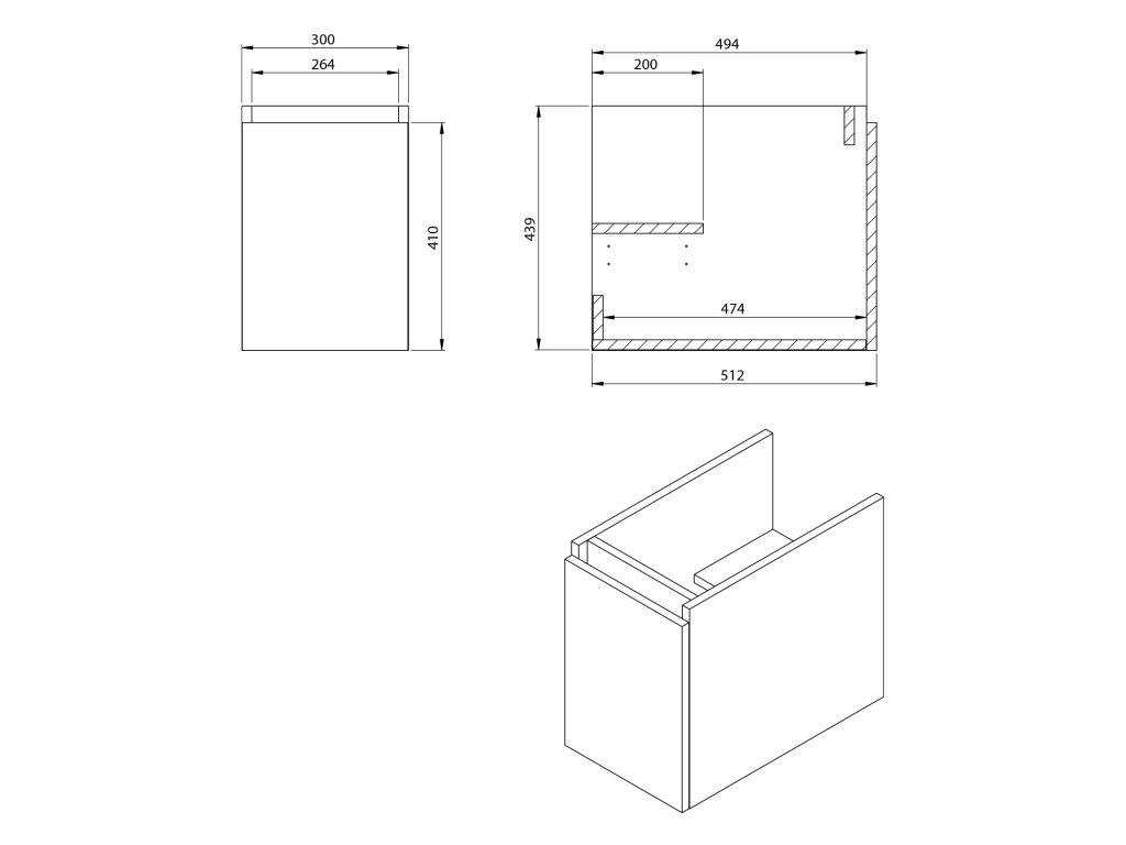 Uvnitř skříňky je nad zásuvkou praktická police na drobnosti každodenní potřeby. Pod hranu umyvadla lze instalovat tlumené LED osvětlení, které pro jeho nízkou spotřebu (1W) není nutné vypínat.