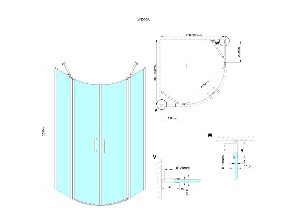 | Kategorie: | Čtvrtkruhové sprchové kouty otevírací dvoukřídlé |