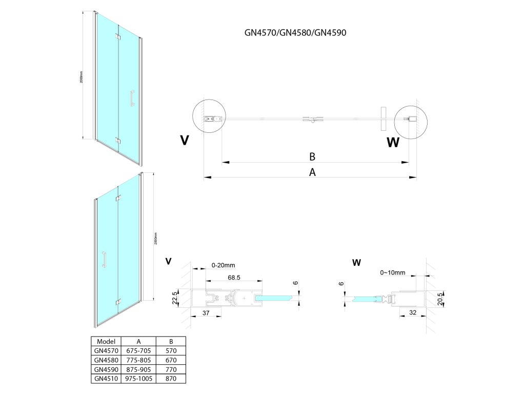 - Dveře skládací 700 - 900 mm umožňují složení ke stěně a úsporu místa v koupelně