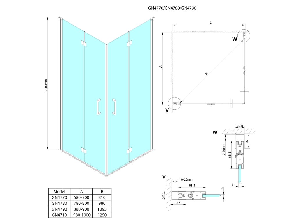 - Dveře skládací 700 - 900 mm umožňují složení ke stěně a úsporu místa v koupelně