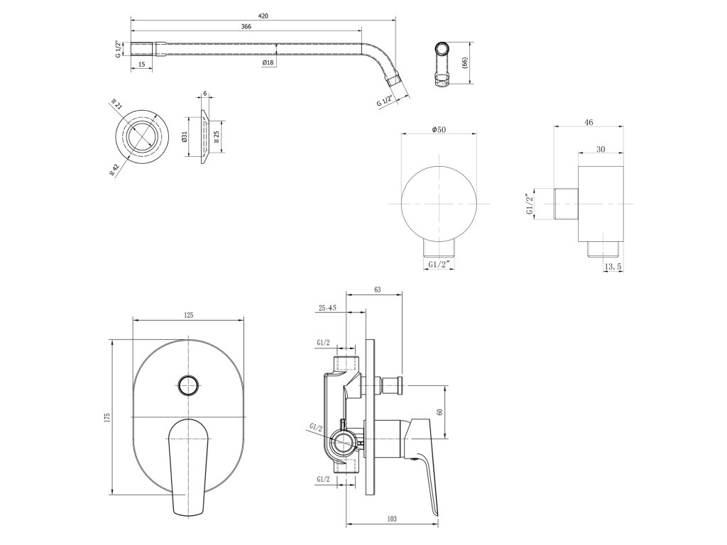 LOTTA podomítkový sprchový set s pákovou baterií; 2 výstupy; chrom