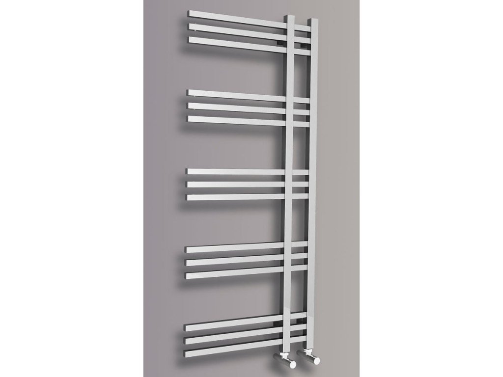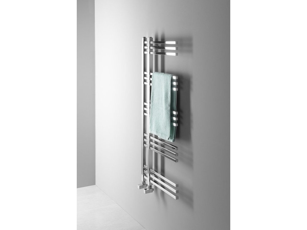 Designově tvarované koupelnové otopné těleso s výjimečným vzhledem je vyrobeno z pochromovaných ocelových trubek. Radiátor lze zavěsit oboustranně.