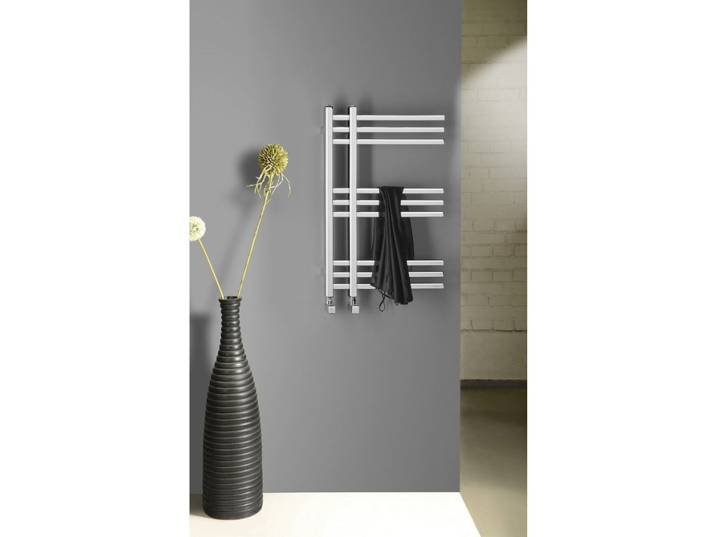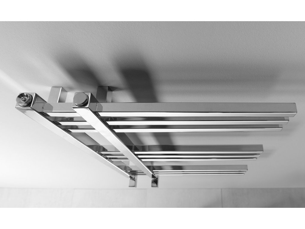 Designově tvarované koupelnové otopné těleso s výjimečným vzhledem je vyrobeno z pochromovaných ocelových trubek. Radiátor lze zavěsit oboustranně.