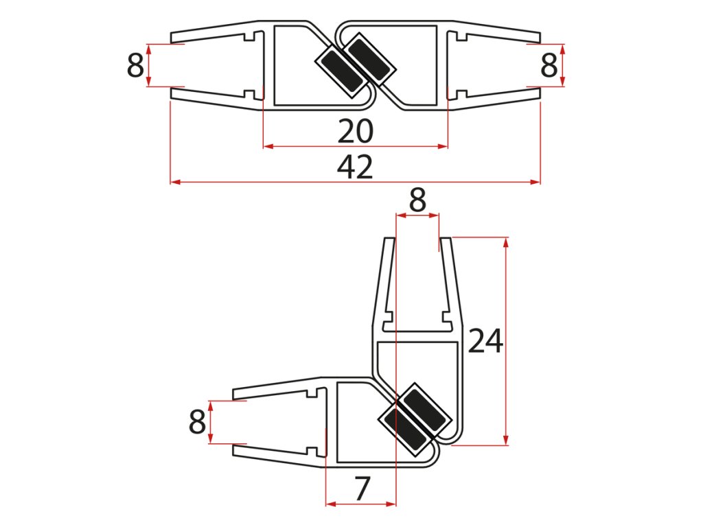 Magnetické těsnění 45° 8/8mm skla