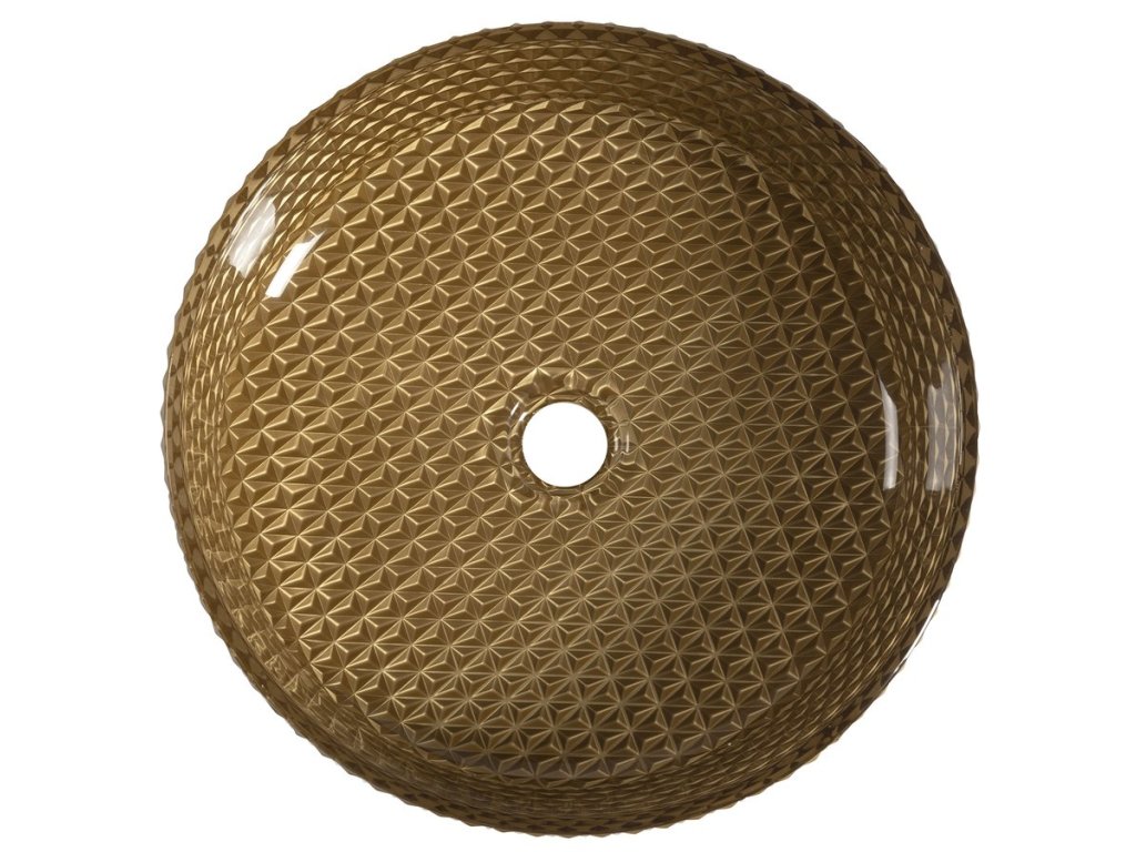 MARAGUA skleněné gravírované umyvadlo na desku Ø 39,5cm, zlatá