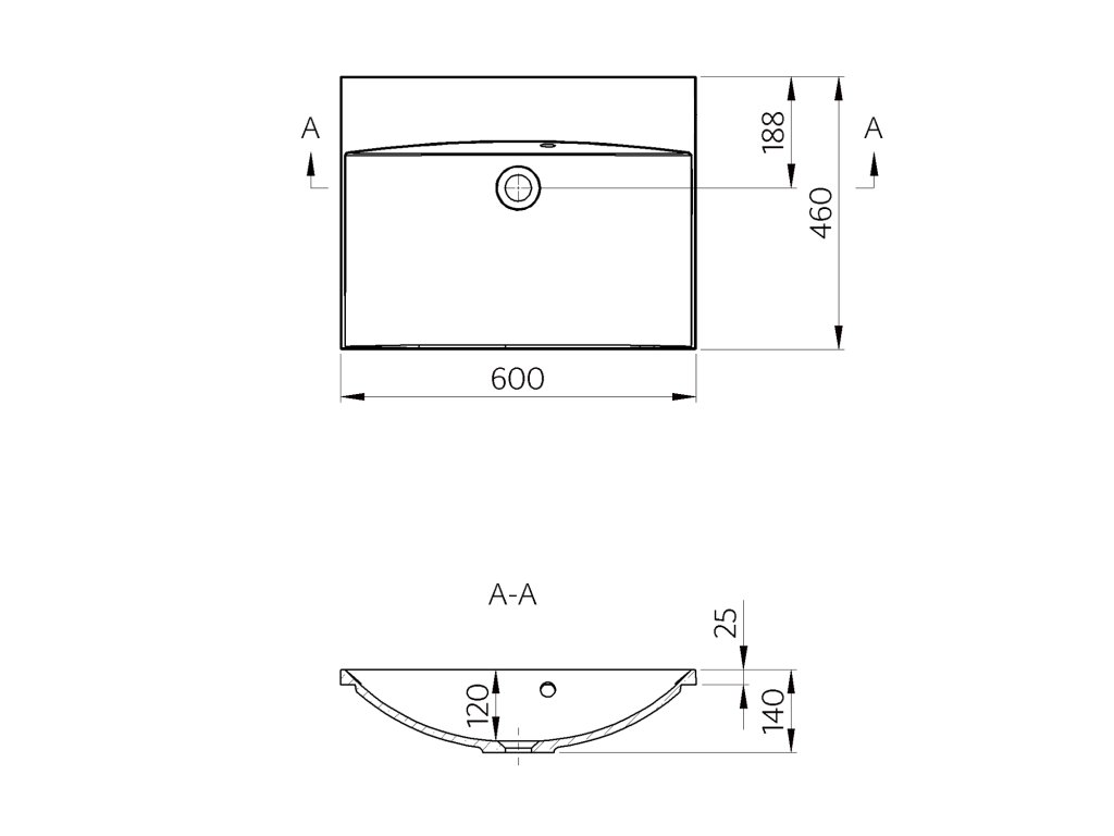 MARIA umyvadlo; litý mramor; 60x46cm; bez otvoru; bílá