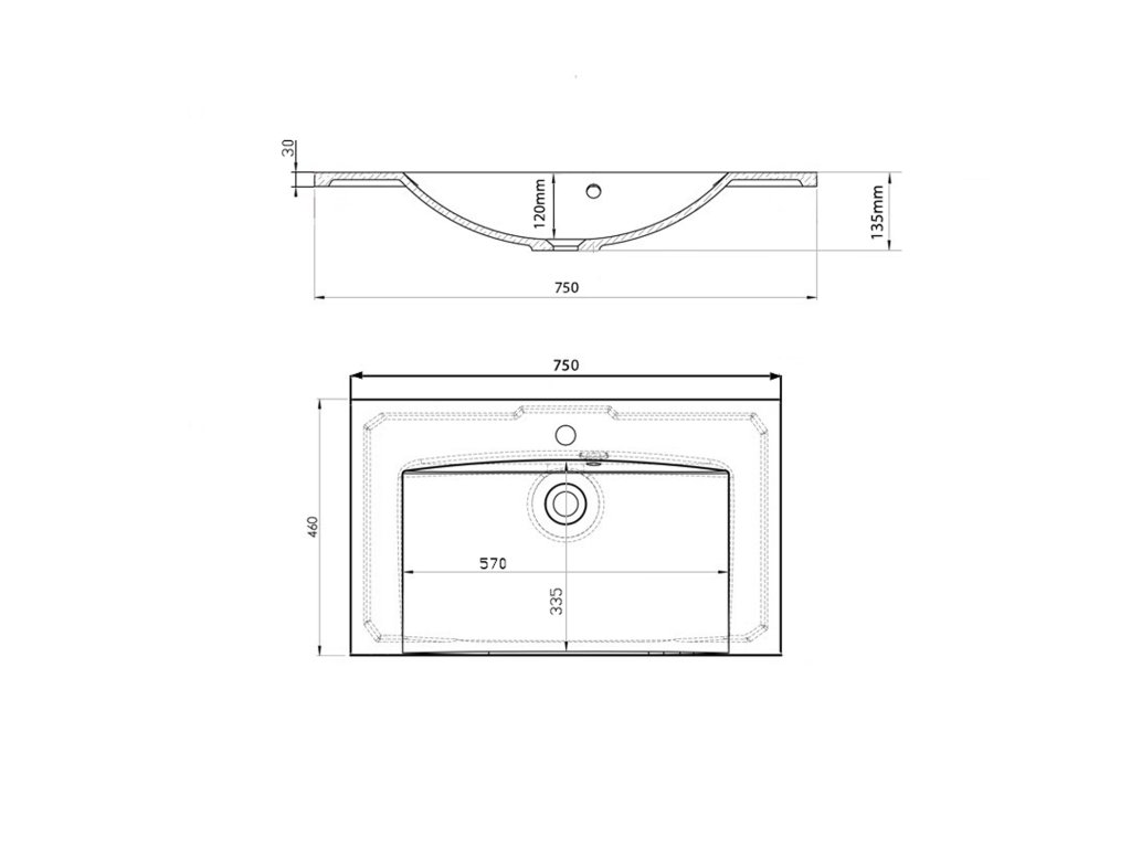 MARIA umyvadlo; litý mramor; 75x46cm; bílá