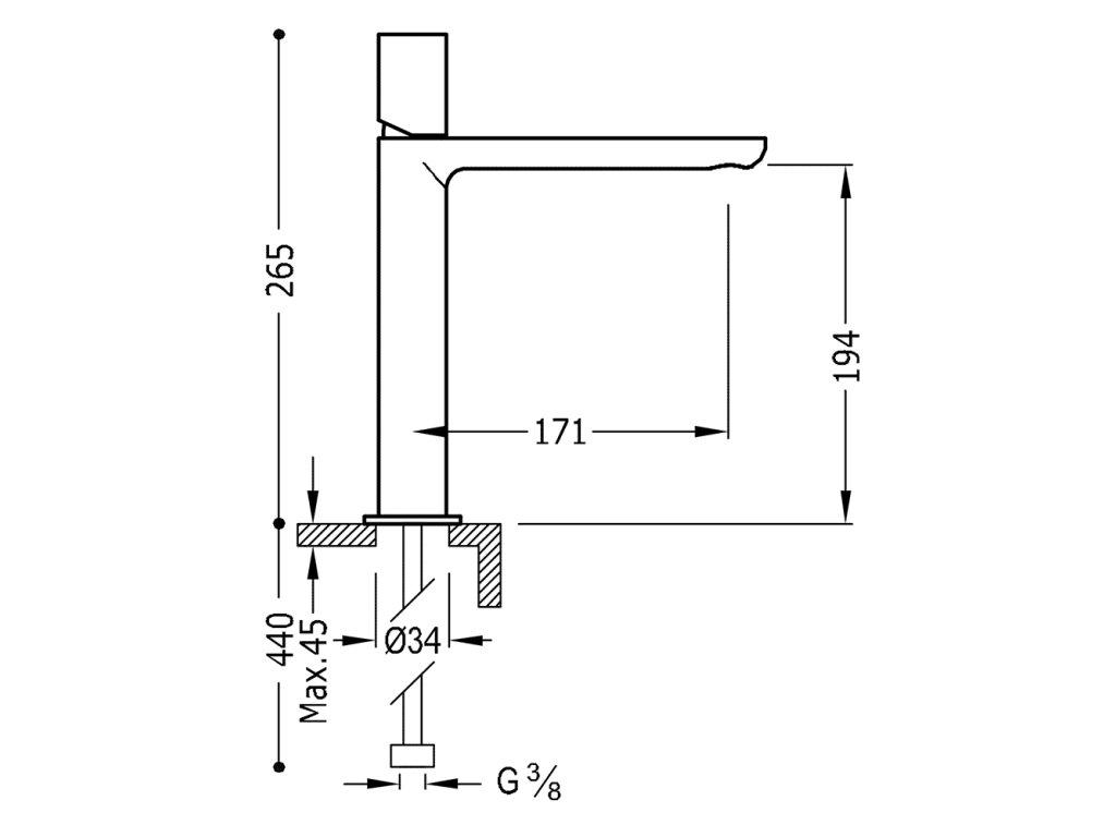 Umyvadlová stojánková baterie vysokáVýška: 265 mm