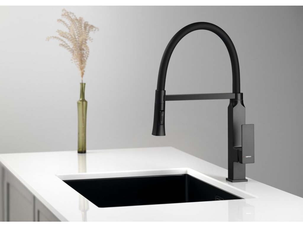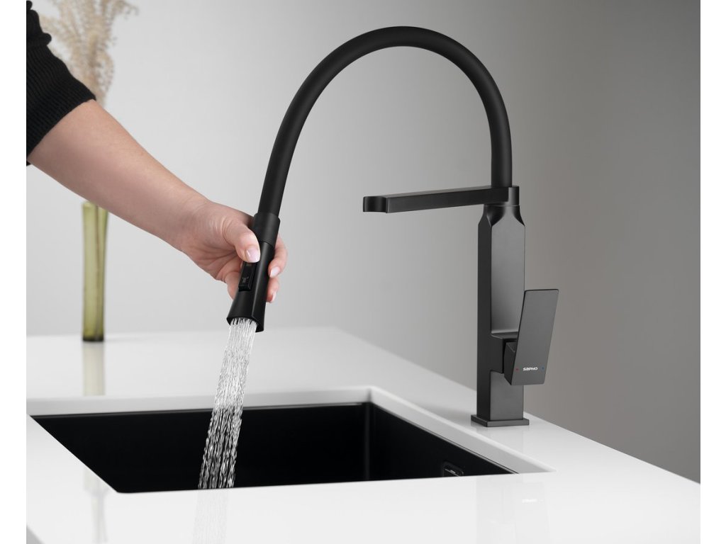 MAYA stojánková dřezová baterie se sprškou, černá mat