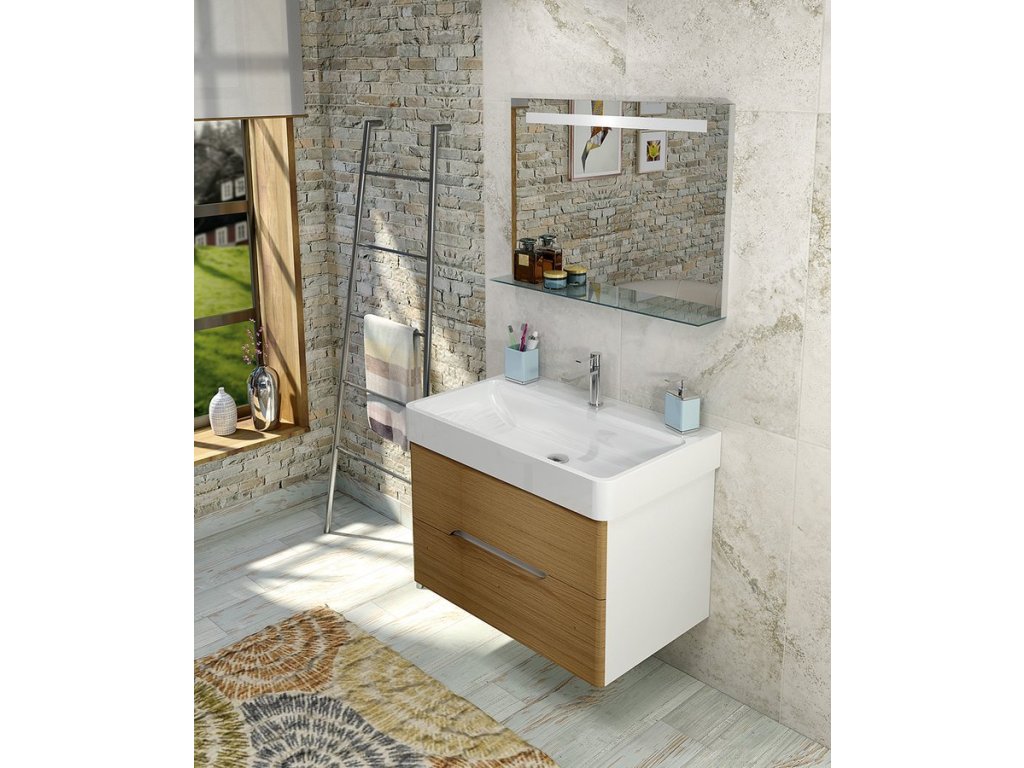 MEDIENA umyvadlová skříňka 76x51x48,5cm, bílá mat/dub natural