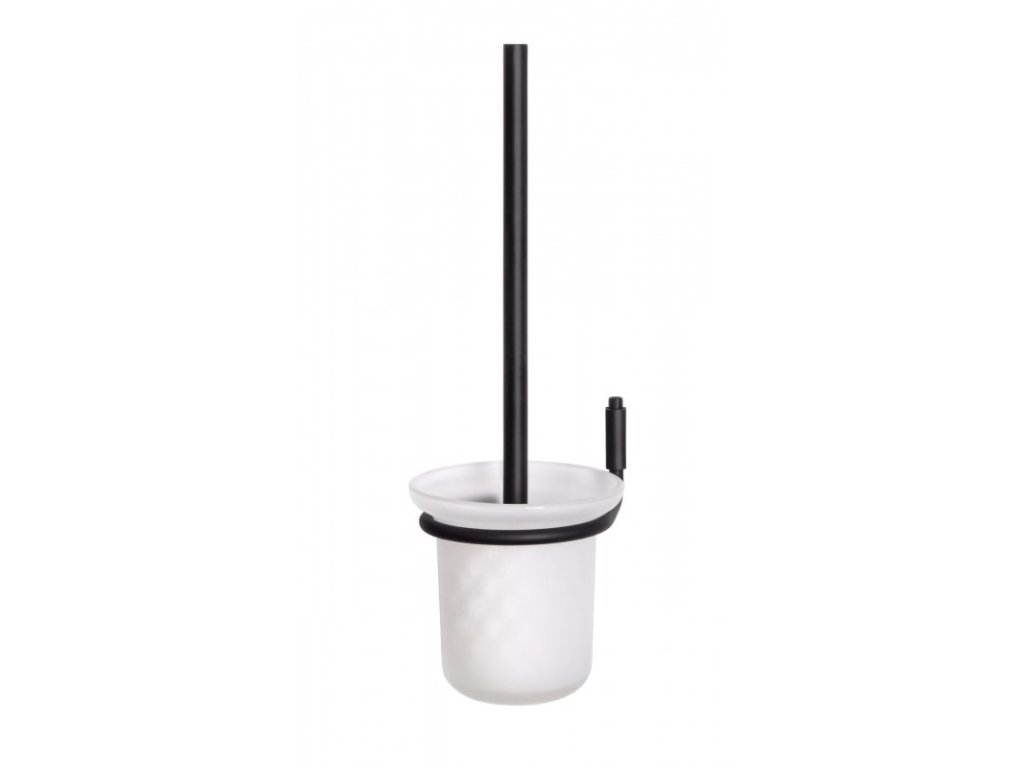 Série MINI v moderní černé barvě je tvořena dávkovačem mýdla, WC štětkou, háčkem, držákem toaletního papíru a držákem na ručníky.