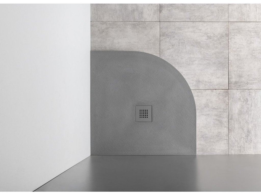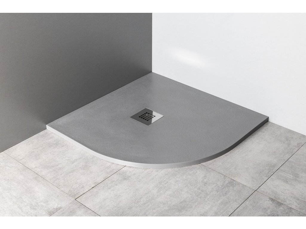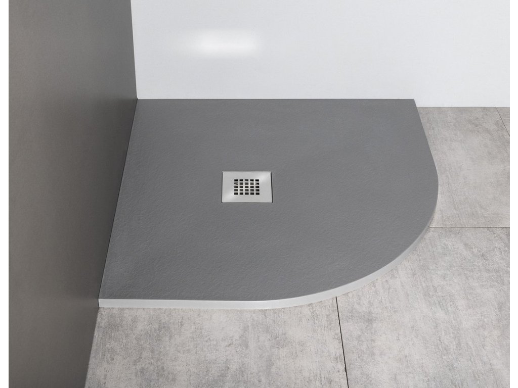MITIA sprchová vanička z litého mramoru, čtvrtkruh 90x90cm, šedá