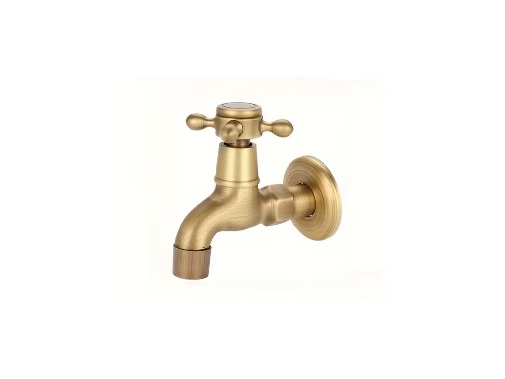 Mosazný nástěnný výtokový ventil 1/2" s keramickým uzavíráním, délka 95 mm - stará mosaz