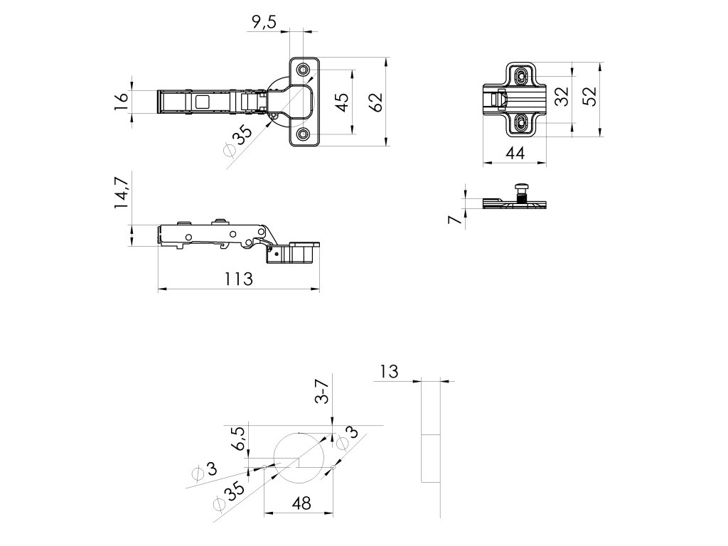 Nábytkový závěs s podložkou, naložený, integr.tlumení, chrom