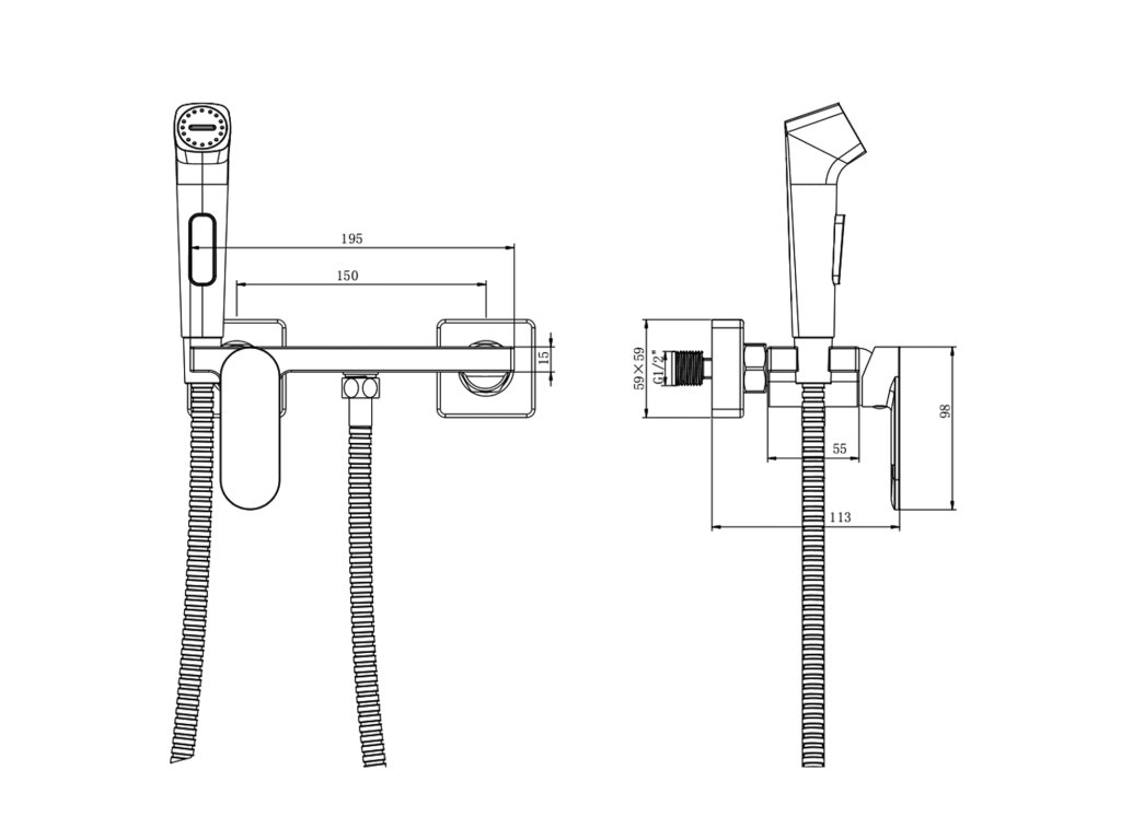 Nástěnná bidetová baterie se Stop sprškou a poličkou, černá mat