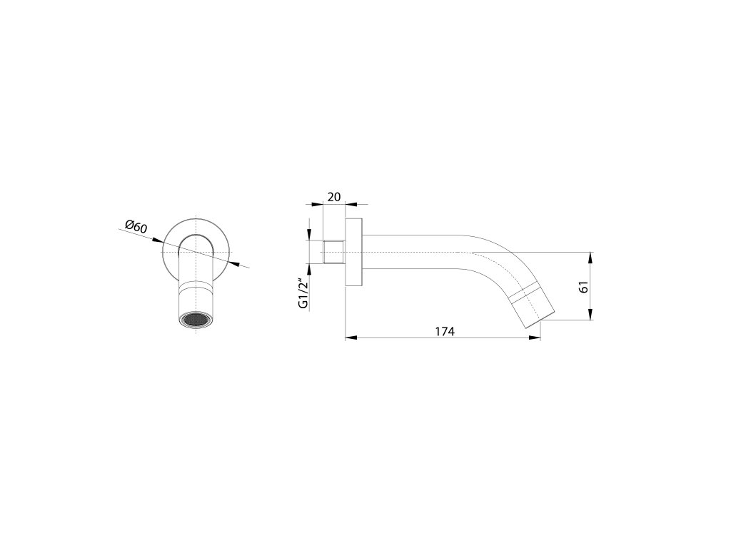Nástěnná výtoková hubice; kulatá; 174mm; chrom