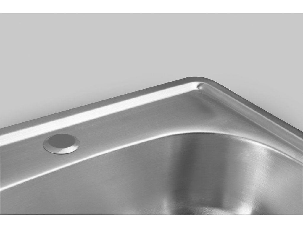 Dřez je usazen na pracovní desku a hranou ji převyšuje. |