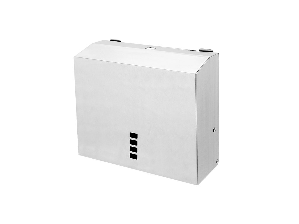 Zásobník papírových ručníků skládaných nerez na stěnu menší je skvělým doplňkem do koupelny. Uchycení zásobníku pomocí 2-3 šroubů, dle potřeby. Rozteč mezi 2 hlavními otvory pro uchycení 229-237mm. Součástí balení jsou 3 šrouby, 3 hmoždinky, 2x bezpečnostní klíček. Doporučené naplnění zásobníku je do 2/3. Rozměry papírových ručníků ve skládaném skladu 23-25cm x 11-12cm. Materiál je vysoce kvalitní broušená nerez ocel 1.4301. Velikost otvoru pro vytahování papírových utěrek je 25cm.Doplňkové parametry