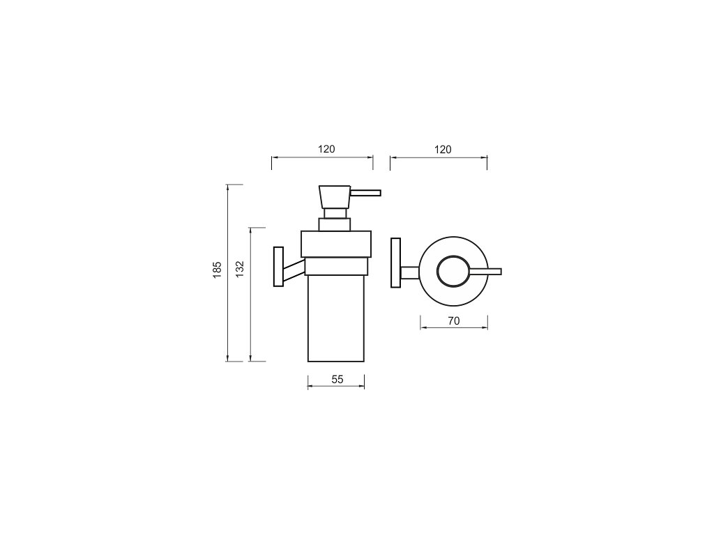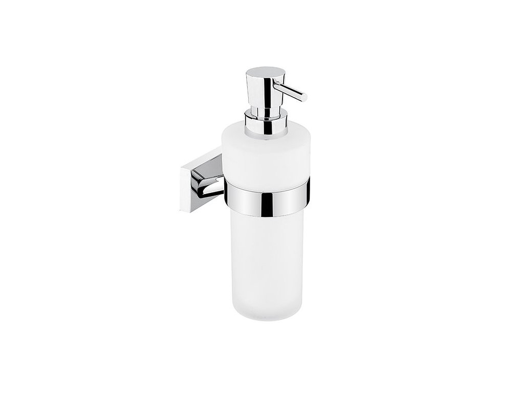 Háček s dávkovačem. Matované sklo. Objem dávkovače 250 ml. Pumpička plast-chrom. Úchyt materiál mosaz-povrchová úprava chrom.