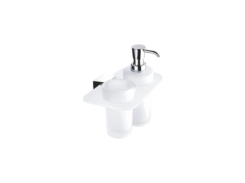 Držák sklenky a dávkovače Kibo Ki X3–5831W-26Držák sklenky a dávkovače. Nádobka-sklo matované. Police-Plexiglass matovaný povrch. Pumpička plast s povrchovoou úpravou chrom.