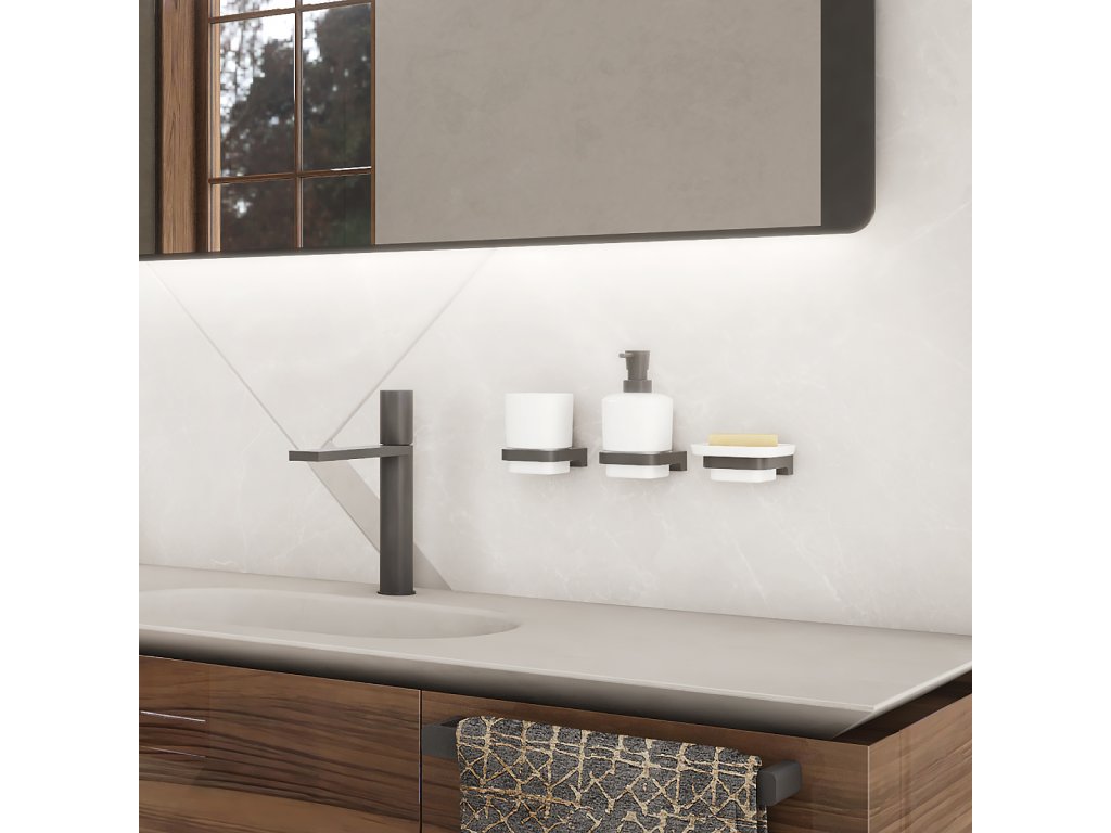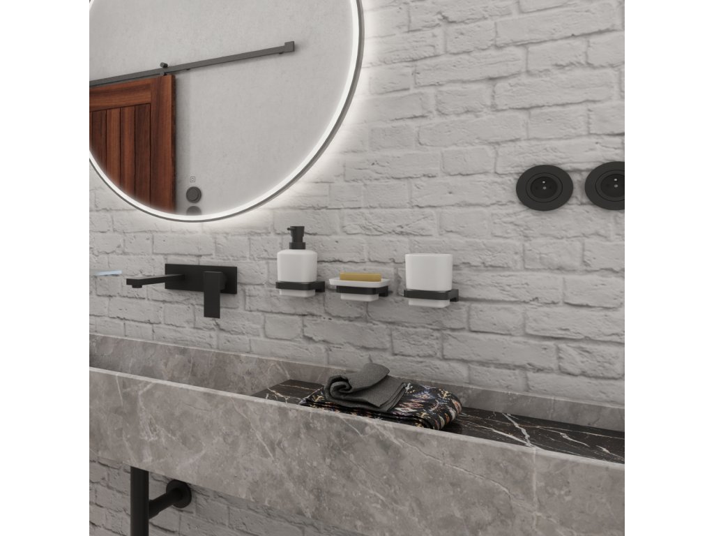 Sada keramických nástěnných koupelnových doplňků - dávkovač mýdla, držák kartáčků, háček na ručník je skvělým doplňkem do koupelny. Tato sada koupelnových doplňků obsahuje následující výrobky NIMCO ze série Maya černá: Dávkovač tekutého mýdla MAC 29031K-T-90 Dávkovač na tekuté mýdlo o objemu 320 ml. Nádobka keramická. Pumpička mosaz/ černý mat. 1 ks. Držák na kartáčky MAC 29058K-90 Nástěnný držák s keramickým pohárkem na kartáčky. 1 ks. Jednoduchý háček na ručníky MAC 29054-90 Designový háček na ručníky, župany apod. Minimalistický. Materiál mosaz/černý mat. 1 ks. Sada koupelnových doplňků bude koupelně slušet mnohem více, pokud zvolíte i další doplňky série Maya černá z nabídky koupelnových a WC doplňků NIMCO.Doplňkové parametry