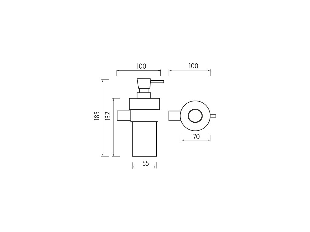 Dávkovač tekutého mýdla . Úchyt plexiglass matovaný povrch. Barva/úprava: Chrom