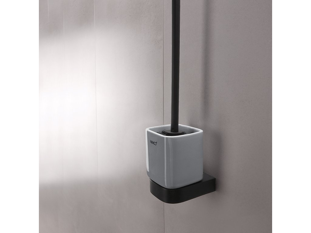 WC sada nástěnná - WC štětka s keramickým držákem na zeď a držák toaletního papíru jsou skvělým doplňkem k WC. Tato sada doplňků k wc obsahuje následující výrobky NIMCO ze série NIKAU černá: Toaletní štětka NKC 30094KN-90 Nástěnný držák s keramickou nádobkou. Rukojeť kartáče černý mat, černý kartáč. 1 ks. Držák na toaletní papír NKC 30055-90 Designový držák wc papíru na zeď, bez krytu. 1 ks. Sada k WC bude koupelně slušet mnohem více, pokud zvolíte i další doplňky série Nikau černá z nabídky koupelnových a WC doplňků NIMCO.Doplňkové parametry