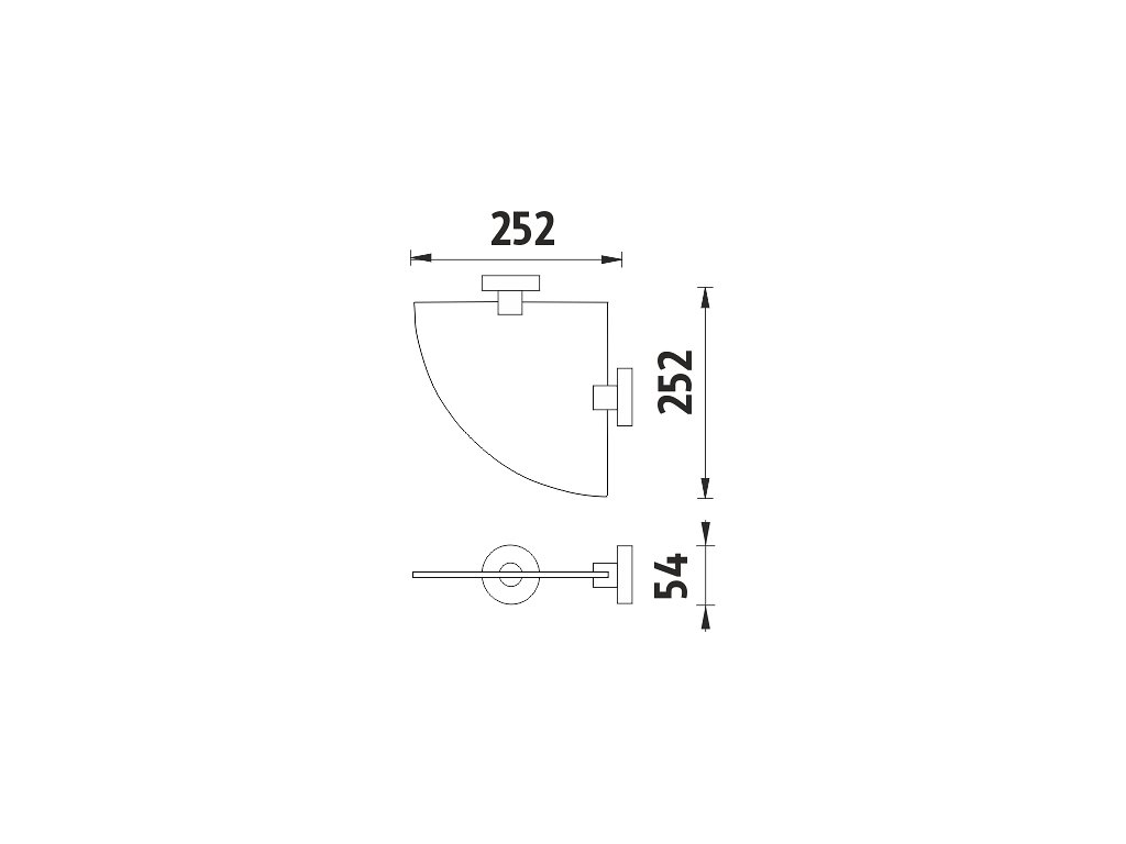 Rohová police s frézováním. Materiál plexiglass. 210x210 mm. Barva/úprava: Chrom