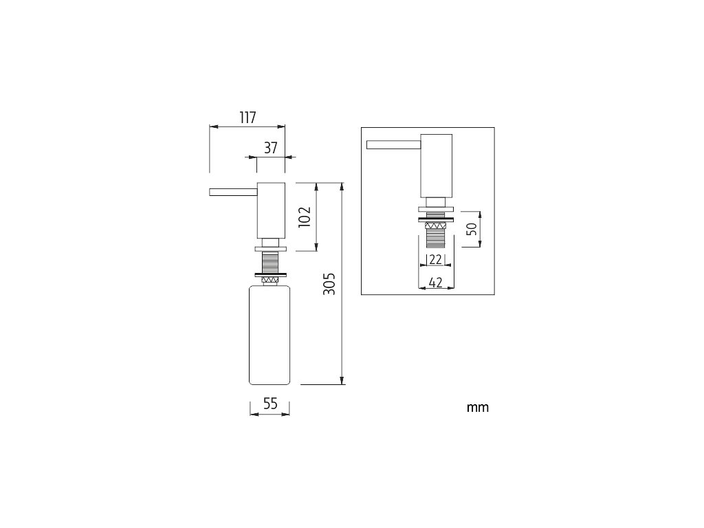 Vestavěný dávkovač na tekuté mýdlo nebo prostředek k mytí nádobí. Hlava pumpy průměr 25mm Barva/úprava: Chrom