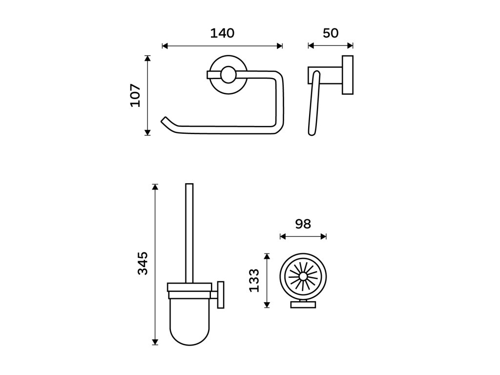 WC sada nástěnná - štětka a keramický držák toaletního papíru je skvělým doplňkem k WC. Tato sada doplňků k wc obsahuje následující výrobky NIMCO ze série UNIX: Toaletní štětka UN 13094WN-26 Nástěnný držák s nízkou nádobkou z matného skla. Rukojeť kartáče z mosazi, povrchová úprava chrom, černý kartáč. 1 ks. Držák na toaletní papír UN 13055-26 Držák wc papíru na zeď, bez krytu. 1 ks. Výrobky série UNIX lze připevnit na zeď vrtáním nebo přilepením. Sada k WC bude koupelně slušet mnohem více, pokud zvolíte i další doplňky série Unix z nabídky koupelnových a WC doplňků NIMCO.Doplňkové parametry