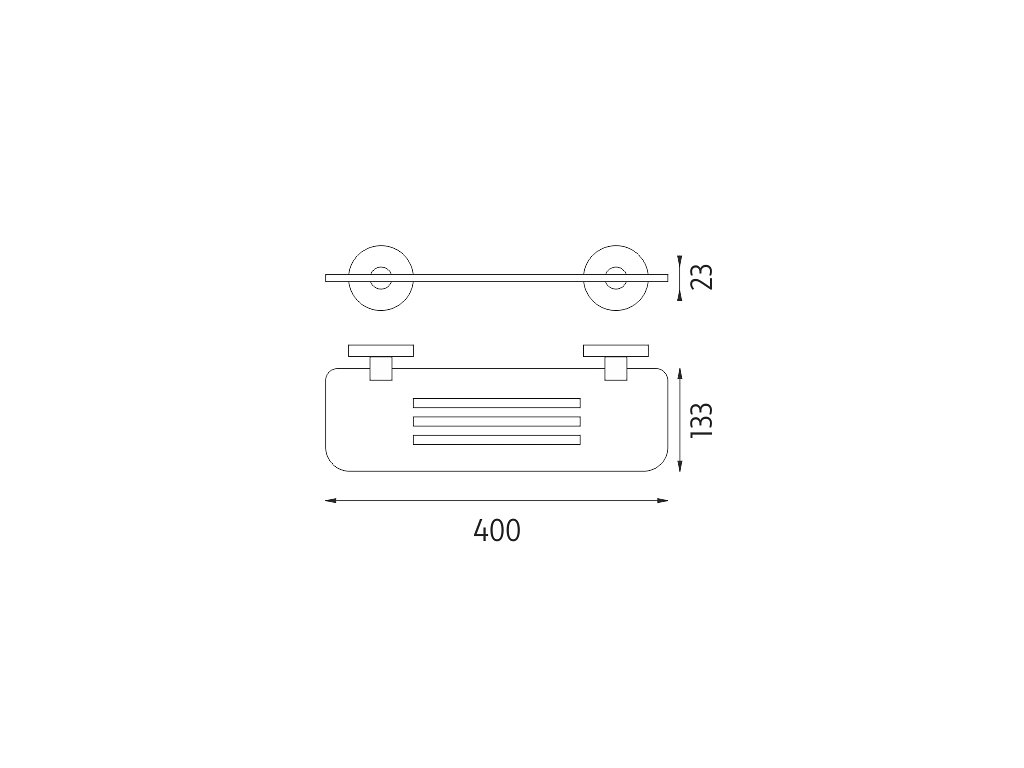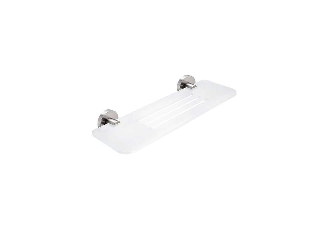 Police s frézovanými otvory s matovanými sklenkami. Šířka matované police plexiglass 60 cm. Barva/úprava: Chrom