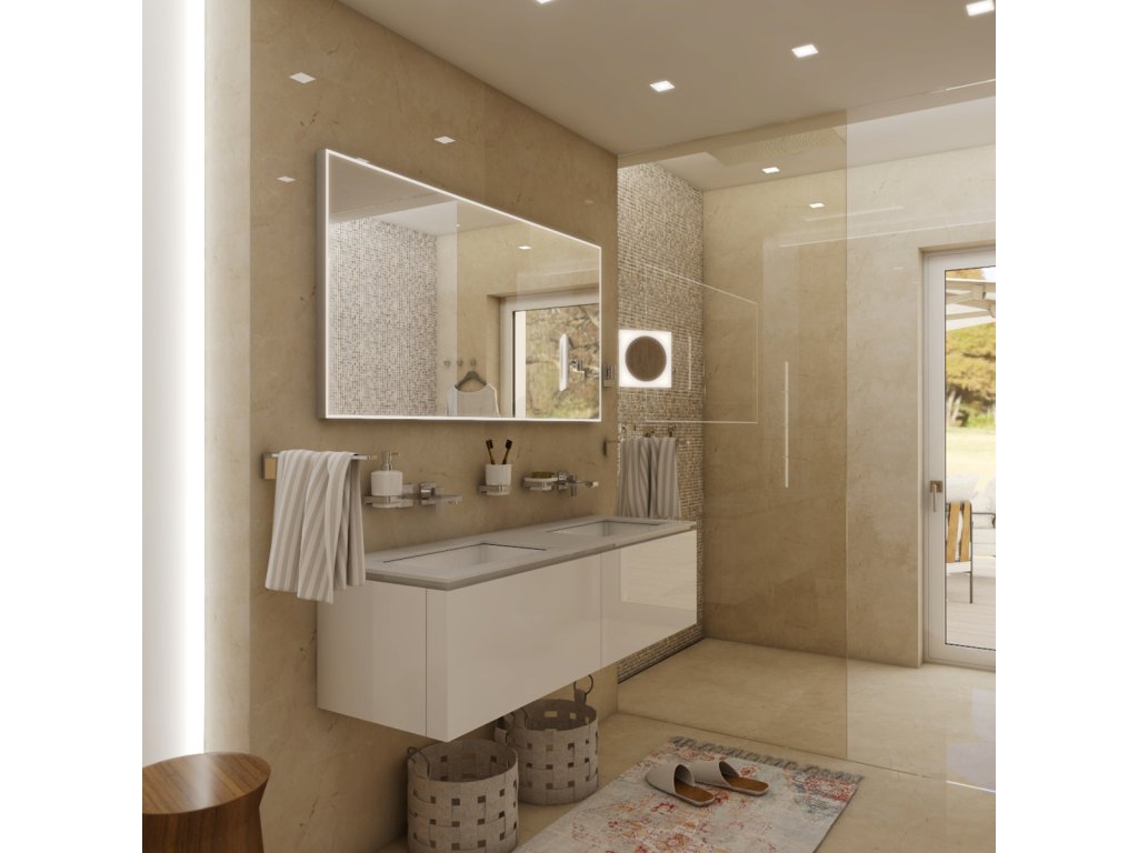Výkonné LED diody po celém obvodu zrcadla zakryté 8mm rámečkem. Konstrukce z hliníkového rámu 32×19mm, sklo zrcadla o tloušťce 5mm. Připojení 220–240 V. Zapínání / vypínání / ovládání dotykovým senzorem. Možnost nastavení barevné teploty svícení. Životnost LED diod je až 50 000 hodin. Ochrana IP 44. POVRCHOVÁ ÚPRAVA: rám hliníkový MATERIÁL: sklo + hliník Technický list GENERÁLNÍ KATALOG & CENÍK NÁVOD K MONTÁŽI – VRTÁNÍ NIMCO všeobecný ilustrovaný návod k montáži výrobků.